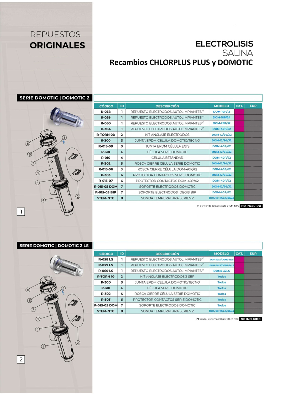 - Recambios CHLORPLUS CPT-PLUS y DOMOTIC, electrólisis salina, electrodos, Células y Sondas.